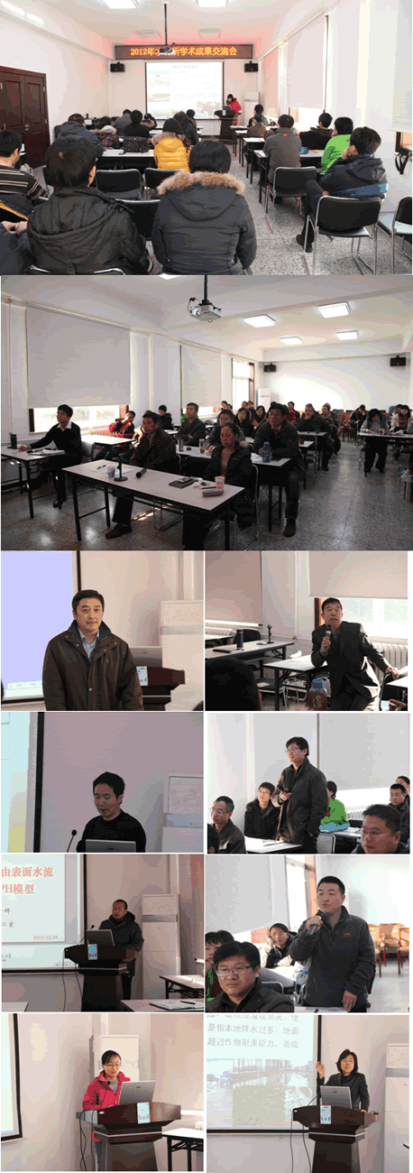2012年12月24日,节水中心(水利研究所)召开了2012年度学术成果交流会,由在中国水科院第十一届青年学术交流会上取得优异成绩的我所青年科技骨干作学术报告。许迪所长、杨继富副所长、刘钰副总工、各部门主任、所职工及研究生共40余人参加本次会议。交流会由副所长胡孟和总工丁昆仑分别主持。