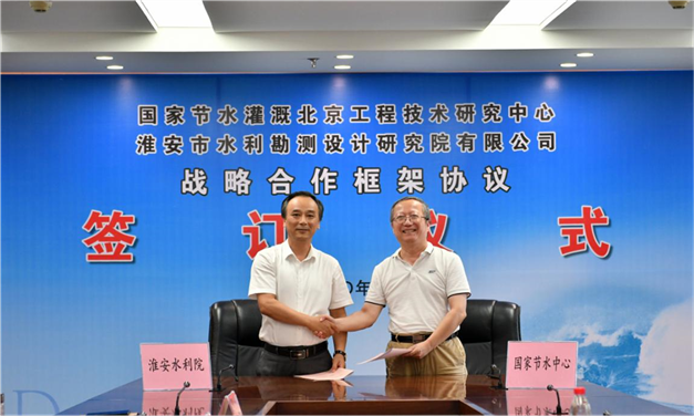 为积极开展科研单位与企业合作,推动科研成果落地应用,2020年7月31日,国家节水灌溉北京工程技术研究中心李益农主任一行拜访了淮安市水利勘测设计研究院有限公司,并与该公司总经理吴昌新共同签署了战略合作协议。淮安市水利勘测设计研究院有限公司副总经理陈坚、尚庆明、顾正南,财务总监杨为伟、总经理助理万建银、副总工朱智兵,中国水科院水利所魏征高工,西北农林科技大学韩文霆教高及相关人员共同出席了签字仪式。