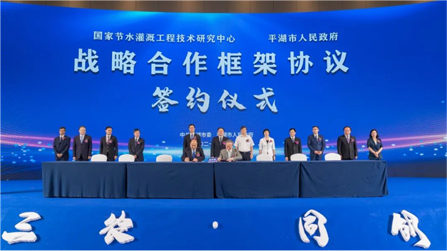 2021年6月8日下午,国家节水灌溉北京工程技术研究中心与平湖市人民政府战略合作框架协议签约仪式在平湖市隆重举行,李益农主任、仲旭东市长分别代表国家节水灌溉北京工程技术研究中心、平湖市人民政府签订了《农业节水灌溉战略合作框架协议》。